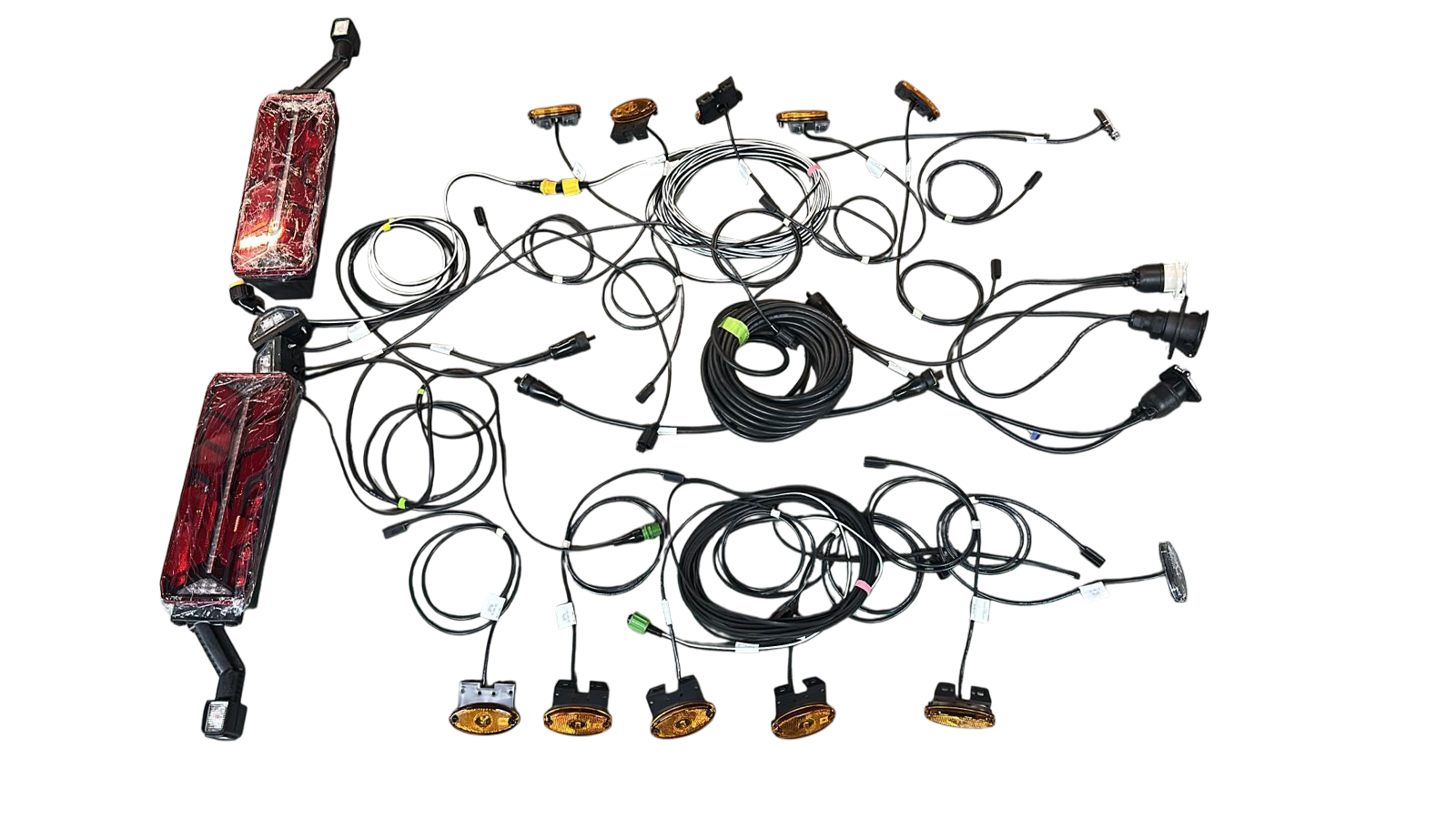 Комплект освещения для полуприцепов ASPÖCK Компания ASPÖCK Systems (Австрия), основанная в 1977 году, является лидером в производстве инновационных систем освещения для коммерческого транспорта, включая полуприцепы, грузовики и сельскохозяйственную технику. Их комплекты отличаются высокой надежностью, соответствием европейским стандартам и устойчивостью к экстремальным условиям эксплуатации . Основные компоненты комплекта: 1. Задние фонари — включают стоп-сигналы, габаритные огни, указатели поворотов и подсветку номерного знака. Корпуса фонарей устойчивы к вибрациям, коррозии и перепадам температур . 2. Светодиодные системы — например, линейные LED-модули Aspöck LumEU с защитой IP66/IP67+, обеспечивающие яркость и долговечность даже в условиях повышенной влажности или загрязнений . 3. Кабели и разъемы — предварительно собранные жгуты проводов, штепсельные розетки (7-пиновые), ПВХ-штекеры и распаячные коробки для быстрого монтажа . 4. Дополнительные элементы — противотуманные фары, светоотражающие ленты, байонетные соединения и аксессуары для крепления . Преимущества: - Совместимость — системы разработаны для интеграции с электрооборудованием тягачей, включая модели KamAZ, европейские и китайские бренды . - Безопасность — использование однопроводной схемы подключения, защита от перегрузок и коротких замыканий . - Простота установки — готовые комплекты сокращают время монтажа и минимизируют ошибки при сборке . - Сертификация — продукция проходит тестирование в лабораториях, гарантируя соответствие стандартам ECE и ISO . Комплекты подходят для полуприцепов Schmitz, Kässbohrer, Kögel и других марок, обеспечивая безопасность движения в любых погодных условиях